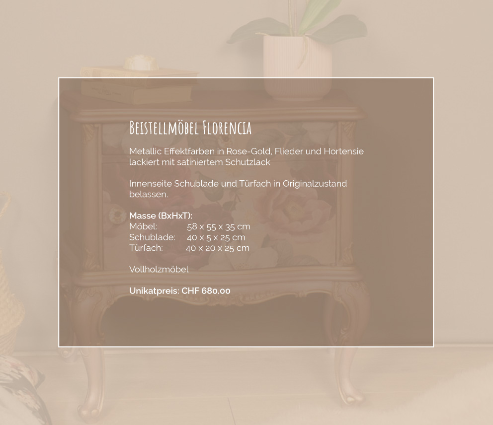 Nach Absprache können die Möbel in Niederglatt besichtigt und abgeholt werden. Falls eine Abholung nicht möglich ist, melde dich bei mir. Wir finden einen Weg, wie das Möbel zu dir kommt.