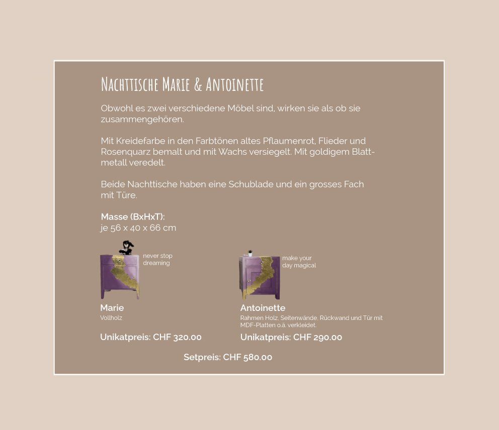 Wie auch wir, haben sie während ihres bisherigen Lebens einiges erlebt und tragen teilweise auch Spuren davon. Nicht immer können oder sollen diese ausgewischt werden. Sie gehören zum Charakter des Möbels und machen es damit einzigartig.
